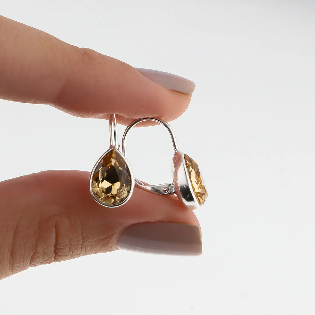 Destaca con elegancia con estos aros tipo brisura adornados con cristales. Su diseño cuidadosamente elaborado y su brillo cautivador crean un efecto visual fascinante. Estos aros son la elección perfecta para añadir un toque de glamour y sofisticación a tus outfits, haciendo que brilles en cualquier evento.